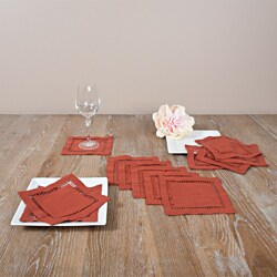 Give your table a great new accent with this set of coasters. These coasters feature polyester construction for durability. Color/pattern: Terracotta with hemstitched border Includes: Twelve (12) coasters Dimensions: 6 inches long x 6 inches wide Materials: 100-percent polyester Brand: Saro Care instructions: Machine washable Read more